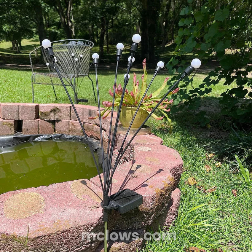 Varillas que se abren en forma de abanico/fuegos artificiales, creando un efecto tipo “luciérnagas” en el jardín. - Resistentes para exterior